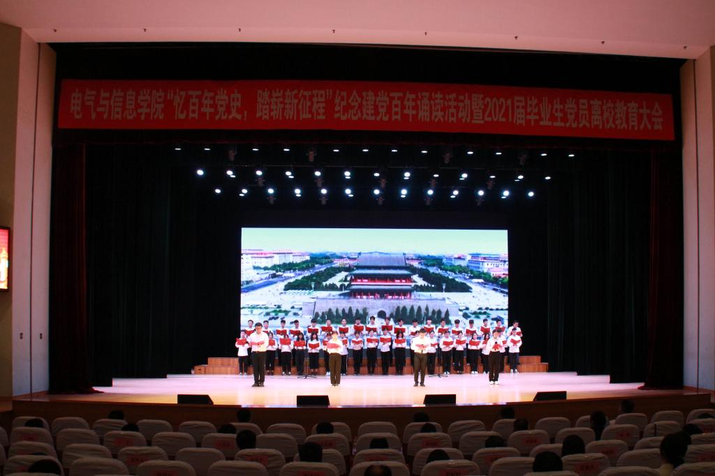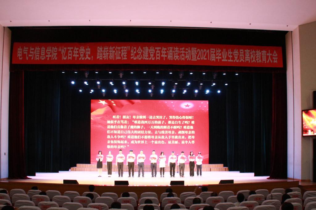 为隆重庆祝中国共产党成立100周年,持续推进党史学习教育走深走实,教育引导学院全体师生员工聚焦中国共产党百年奋斗历程,围绕党史、新中国史、改革开放史、社会主义发展史及新时代中国特色社会主义建设的伟大实践,学史明理、学史增信、学史崇德、学史力行,强化毕业生党员理想信念,牢记使命担当,厚植爱国情怀,脚踏实地开启人生新篇章,6月16日下午,bevictor伟德国际1946在音乐厅举办“忆百年党史,踏崭新征程”庆祝建党100周年诵读活动暨2021届毕业生党员离校教育大会。学生工作处副处长李晓书、校团委副书记高天琦、招生就业处副处长李巍出席活动,bevictor伟德国际1946全体教职工,毕业生党员代表、在校生党员代表、入党积极分子代表及团员代表参加活动。