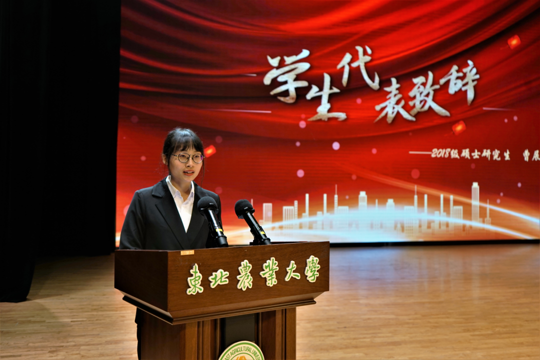 2020年研究生国家奖学金获得者、硕电信1801班曹展源代表在校生发言。她以自身的求学经历向全体新生发出倡议,要明确目标,调整心态,锻炼自己独立的科学思维和宽阔的学术视野,要心有鸿鹄之志,胸有责任担当,珍惜学校营造的良好育人氛围,付出勤奋和汗水,收获无悔的青春。