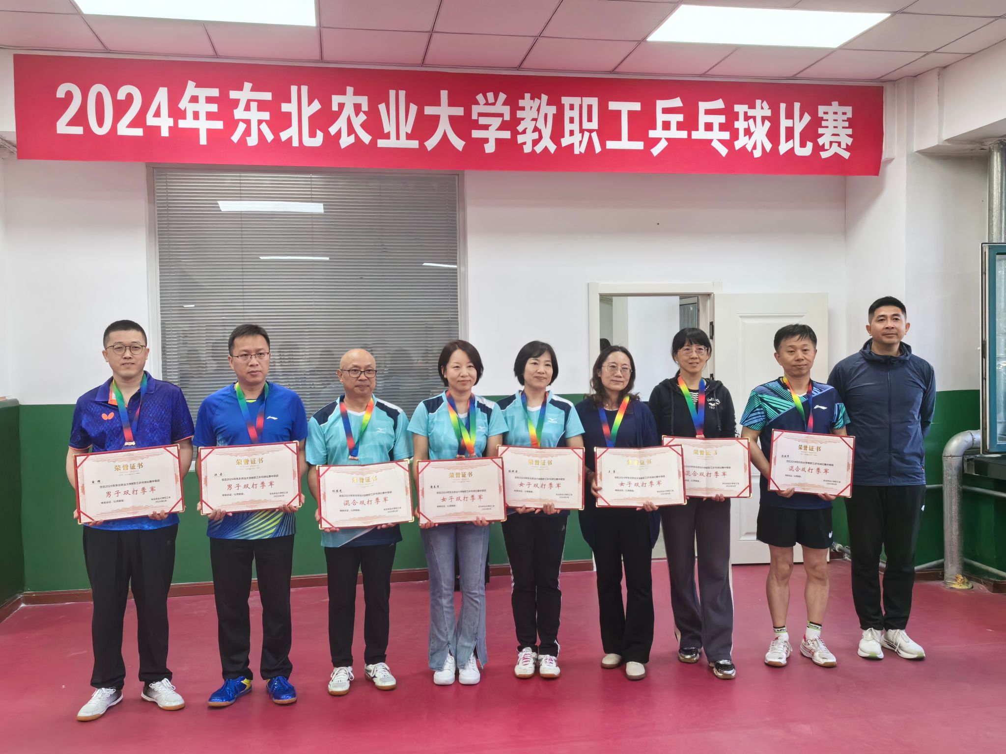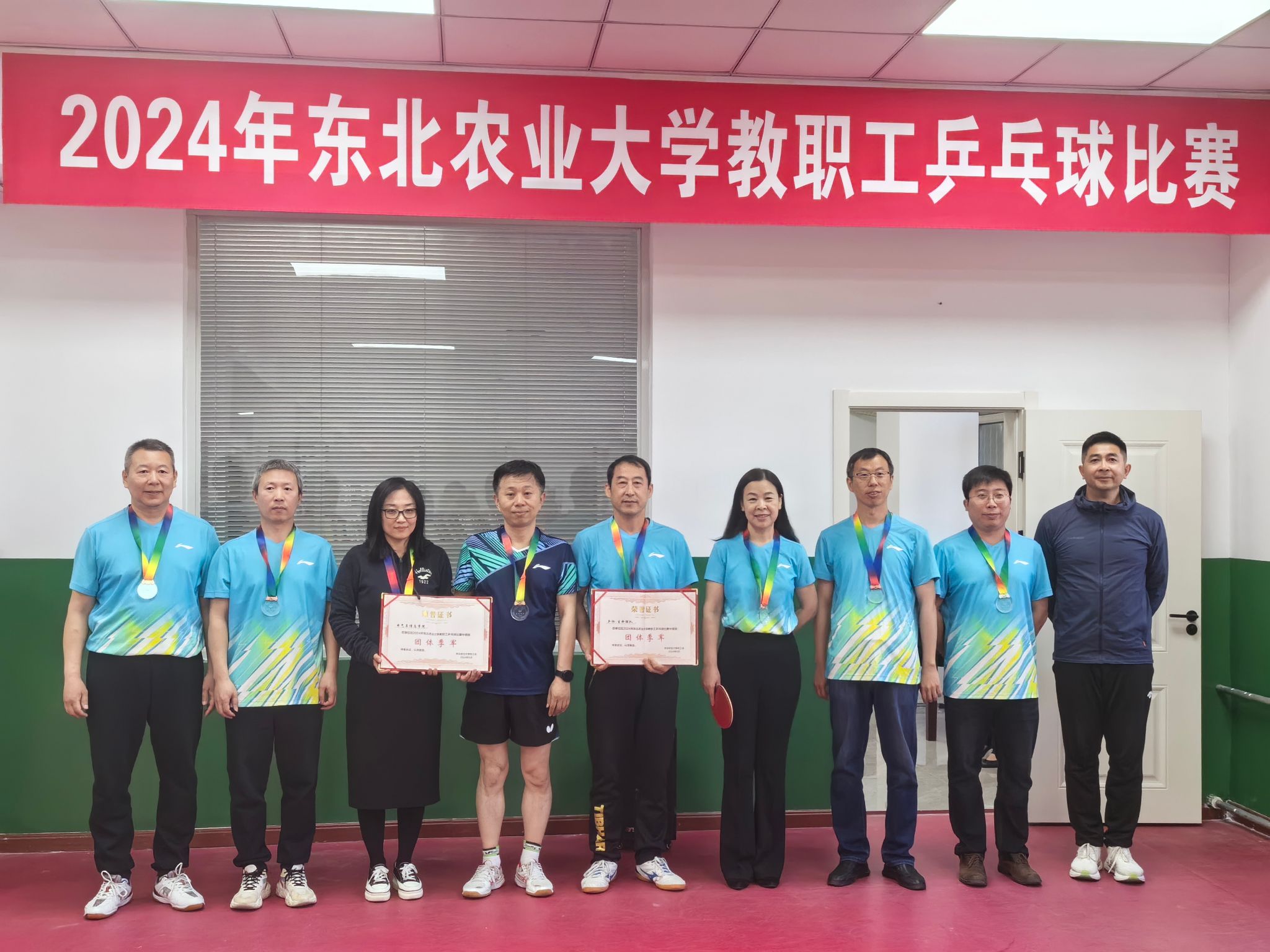 5月20日,为期二十余天的BETVLCTOR伟德2024年教职工乒乓球比赛圆满落幕。我院教师在本次比赛中取得佳绩,由张铁军、冯江、贾银江、沈维政、万庆生、魏晓莉组成的电信一队获得男女混合团体赛季军,张铁军获男子单打亚军,魏晓莉获女子单打季军,张铁军、赵峻颖获男女混合双打亚军,张铁军、贾银江获男子双打亚军,赵峻颖、魏晓莉获女子双打亚军。