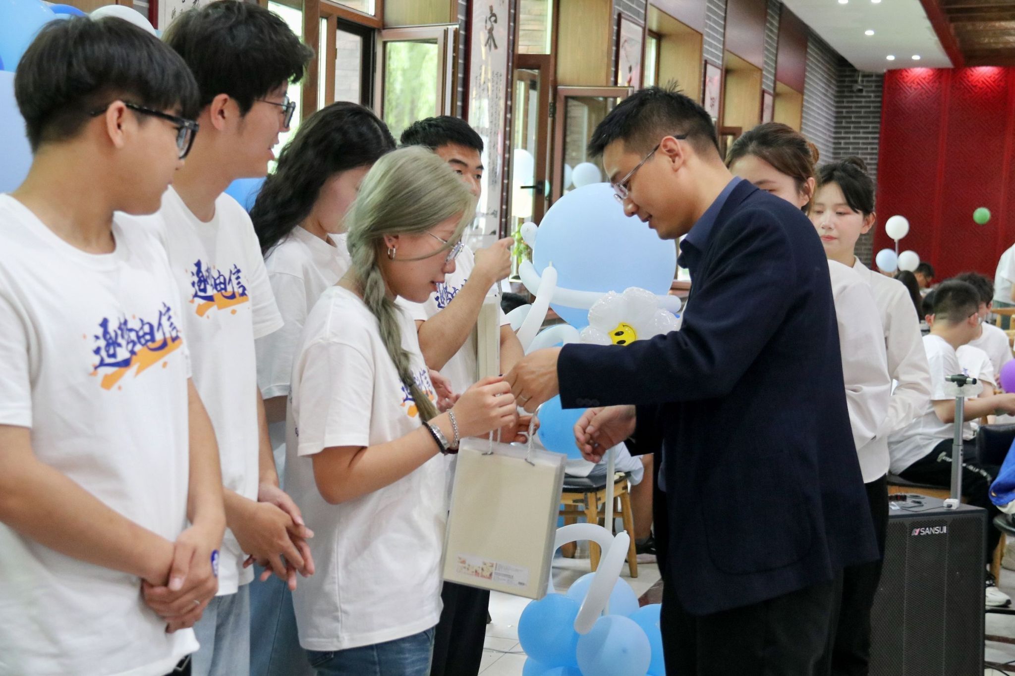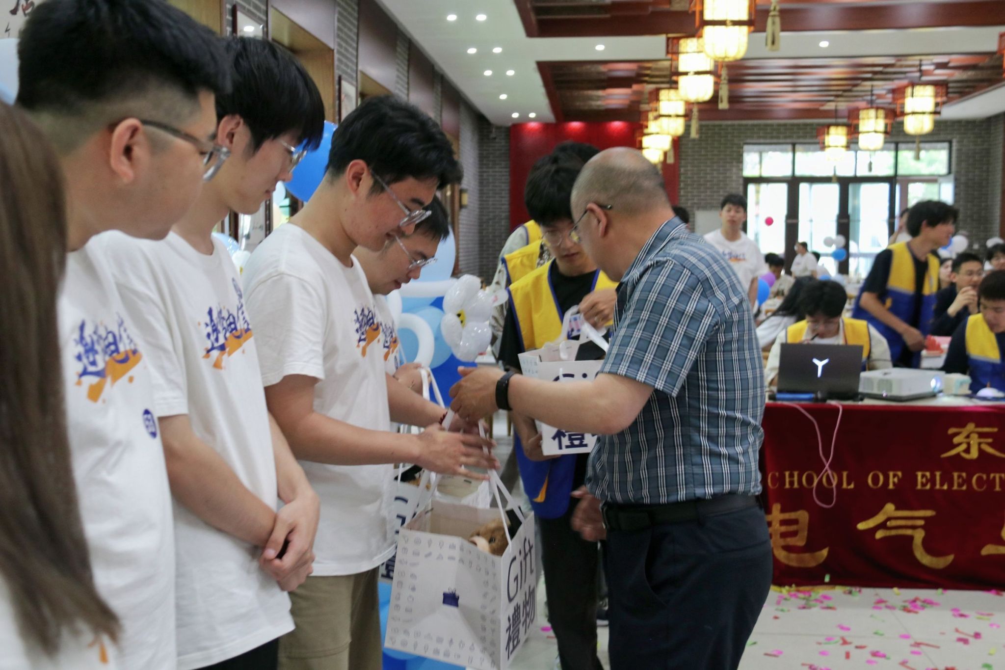 活动期间,共进行了三轮幸运抽奖。学院为毕业生精心准备了毕业小熊公仔、前程似锦毕业纪念笔记本、饺子玩偶等奖品,引现场高潮迭起,欢呼声不断。