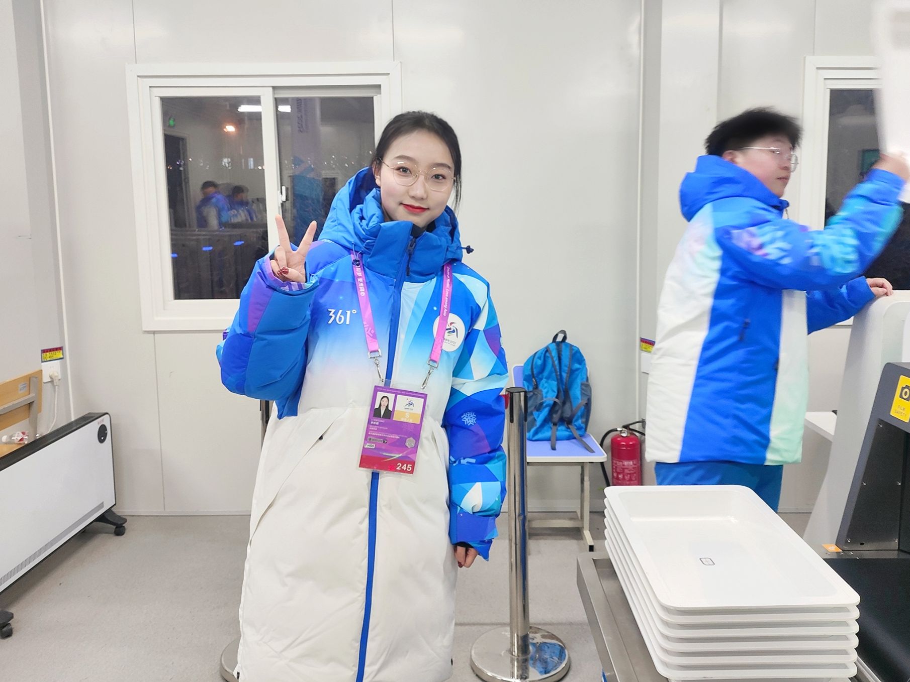 作为志愿者,我在亚冬会期间感触颇深。我每天按时到岗,长时间坚守,引导人员办理业务,帮外国人员激活身份注册卡,为走错通道的观众提供引导,这段经历弥足珍贵,也激励我未来继续发光发热。