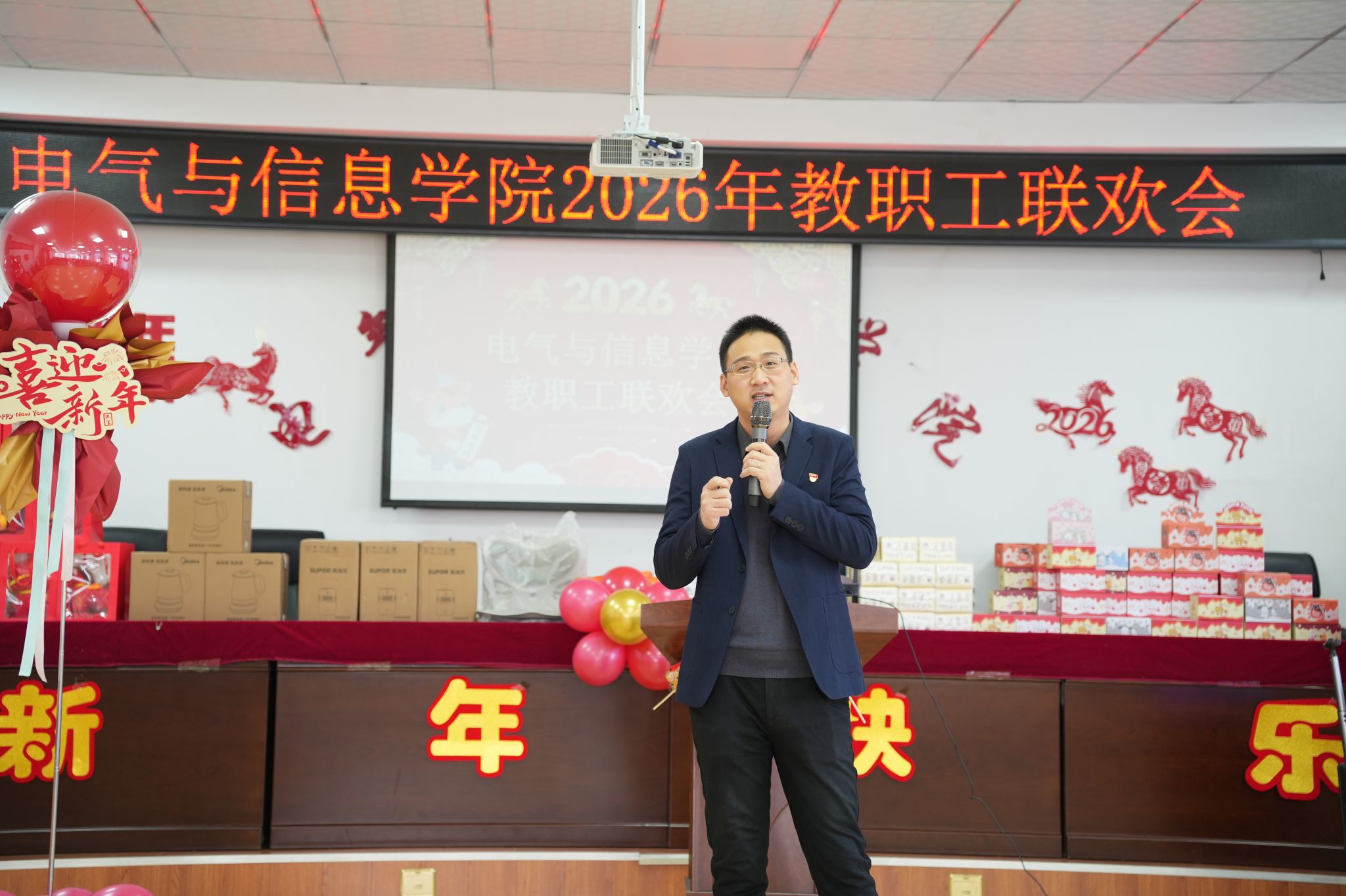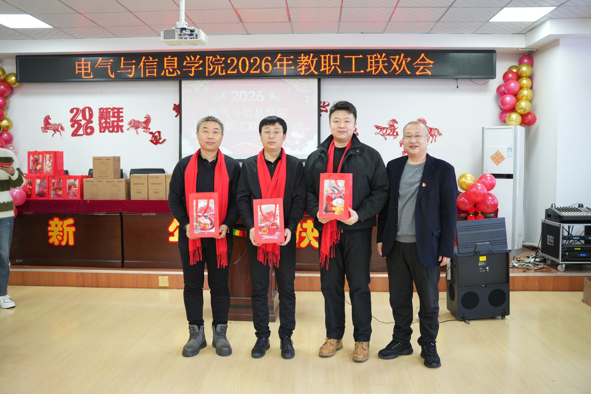 随后,学院为2026年本命年的教职工送上暖心围巾和纪念礼物,并邀请本年度新进教师登台分享新年愿景。
