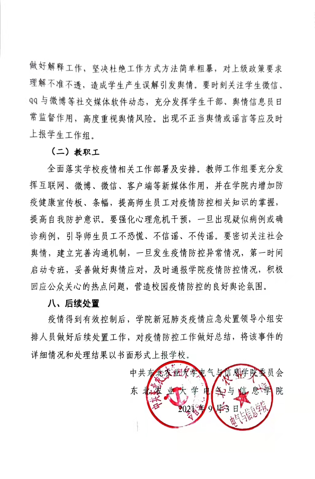 下一篇:东农电信党发[2021]8号文件《bevictor伟德国际19462021年秋季学期疫情防控工作实施方案》