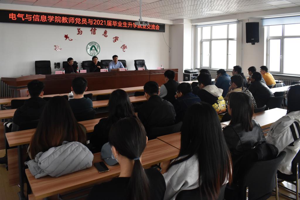 4月11日下午,我院教师党员汪文斌、孙红敏、张喜海、李晓明、刘宇博、刘贵辰召集了2021届部分在校的未就业及打算“二战”的学生,召开了升学、就业交流会。会议由毕业班辅导员刘贵辰主持。会上,老师们详细介绍了本次活动的初衷,他们鼓励全体同学在坚定升学或就业目标的基础上,能够审时度势,积极把握最后的升学调剂的机会,支持毕业生先就业再升学,鼓励未就业毕业生积极投身就业实践,努力实现高质量就业目标。