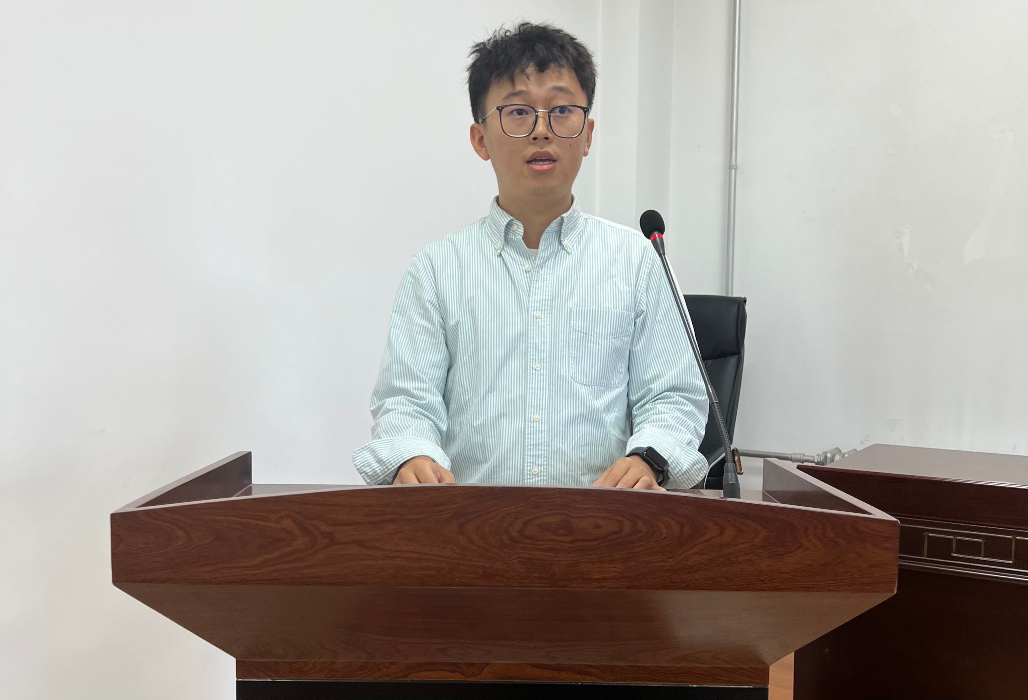 硕电信2101班王浩同学代表在校生发言,他结合自身的学习、科研之路进行经验介绍,建议要加强和导师以及同学之间的沟通;要培养科研素质,掌握基本的科研方法;要确定最终目标,养成良好的生活习惯。