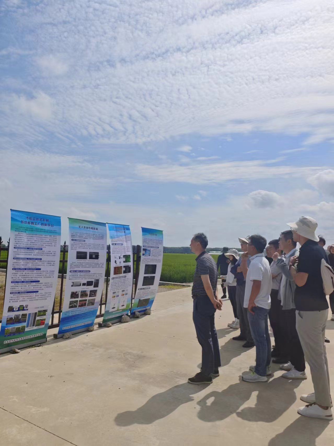 随后孔庆明引领专家组参观了农业科技创新示范区,观摩了水稻小品种实验区、氮肥密度互作试验、大田技术示范及高标准农机作业情况,现场围绕科研团队自主研建的“空天地人”多尺度农情综合监测平台、基于CORS的高精度农机作业管理平台及无人农场智慧大脑等,集中展示了科研成果在双河农场水稻精确栽培中的应用,为后续水稻智慧农场体系建设奠定坚实基础。