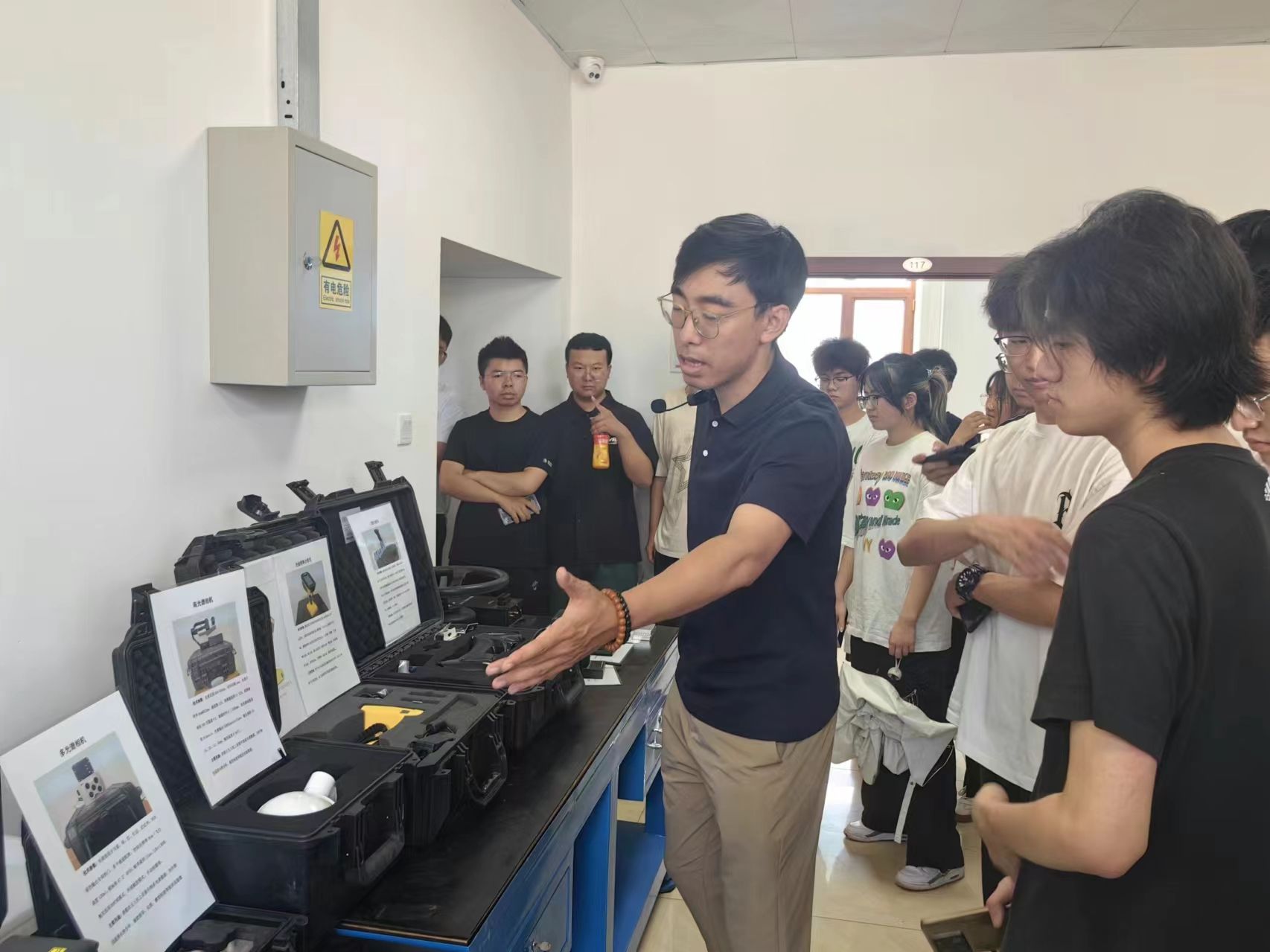 在哈尔滨新光光电科技股份有限公司的高端产品展厅内,工作人员以生动的讲解引领学生们深入探索光电技术在军工国防领域的尖端应用,这些创新实例如同璀璨星辰,极大地拓宽了学生们的视野,让学生们对科技助力国防安全的深远意义有了更为深刻的理解与感悟。