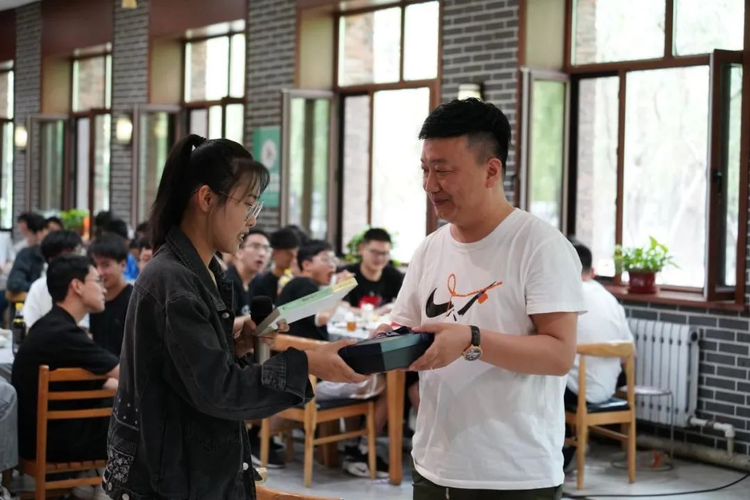 各专业毕业生代表与老师互换纪念物品,一份精心准备的礼物包含了大学四年道不尽的师生情谊。