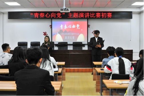 2021年是中国共产党百年华诞,这百年征途波澜壮阔,百年初心历久弥坚。为庆祝建党100周年,深入学习贯彻习近平总书记在党史学习教育动员大会上的重要讲话精神,强化教育引领,筑牢思想根基,进一步增强全院学生爱党、爱国情怀,做到学史明理、学史增信、学史崇德、学史力行,我院学生会于4月23日在院楼530举办了以“青春心向党”为主题的演讲比赛初赛,同学们都踊跃参与。