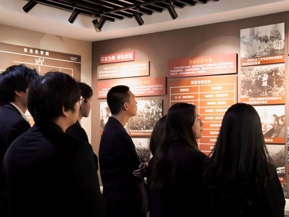 在校史馆,师生党员随讲解员的介绍,认真参观每一件陈列展品,一段段感人的事迹、一幅幅生动的画面、一件件封存的实物,无不诠释着老一辈东农人呕心沥血、艰苦卓著的奋斗历程,让参观师生党员更加深刻领悟东农校风、校训的深刻内涵和东农在国家农业建设与龙江发展中的重要作用。
