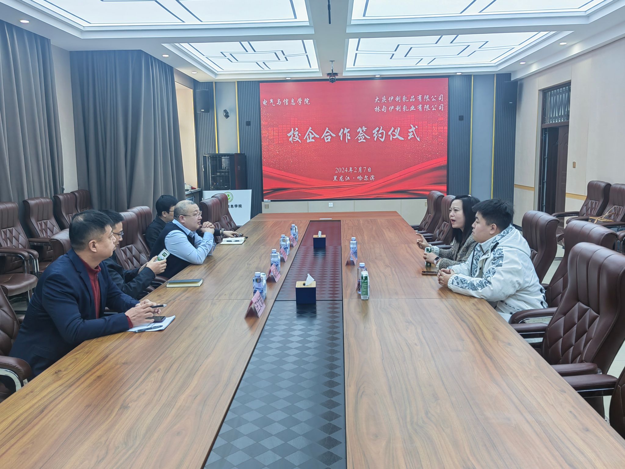 2024年2月6日,大庆伊利乳品有限公司兼林甸伊利乳业有限公司人力资源部经理刘冬妍、人力专员边锁来到我校洽谈校企合作并与bevictor伟德国际1946签署了校企合作协议。bevictor伟德国际1946党委书记万庆生、行政负责人戴百生、党委副书记汪文斌、副院长李晓明参加座谈会,会议由汪文斌主持。