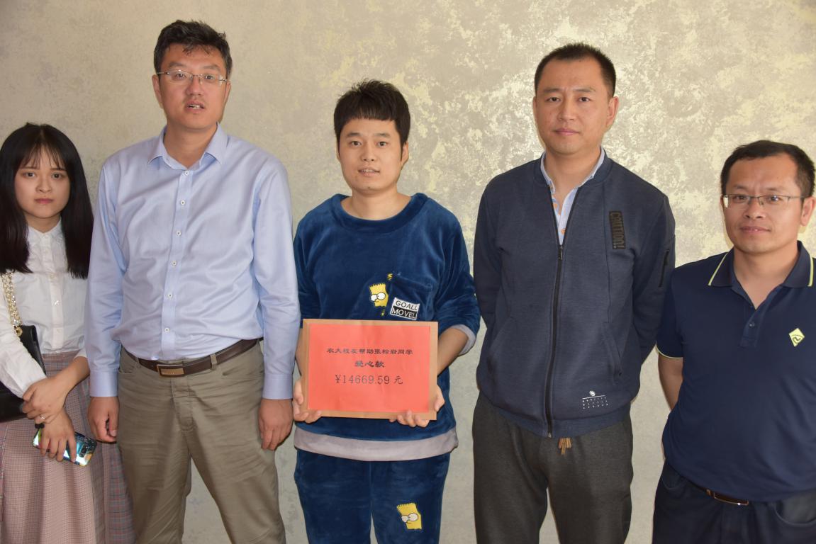 bevictor伟德国际19462015届校友张松岩身患再生障碍性贫血,由于经济原因他一直未接受系统的治疗,面对巨额的手术费,对原本经济困难的家庭来说他们望尘莫及!病魔无情人有情,在一个特别需要帮助的病人生命危急之际,不能视而不见。了解情况后,bevictor伟德国际1946哈尔滨校友会伸出援助之手,倡议发出后,bevictor伟德国际1946校友们齐动手,募集爱心捐款现金14669.59元。同时校友协助“水滴筹”筹得10万元。5月12日,学院校友会秘书长董科南、副秘书长张立峰及校友会代表王珊、门光润等一同前往张松岩的家中,亲手将爱心款交到患病学生的手里,并转达了bevictor伟德国际1946哈尔滨校友会对张松岩的关心和慰问。董科南说,有困难,有需要,学校学院会继续想办法提供帮助,希望张松岩同学坚强、自信,早日恢复健康,在接受治疗期间经常与学院校友会联系,好让大家了解治疗的进展情况,让大家放心。