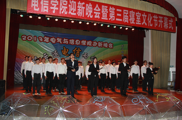 近日, 电信学院于图书馆报告厅举行了迎新晚会暨第三届寝室文化节开幕式,学工处副处长肖冬梅、我院领导班子、教师代表级500余名学生参加晚会。