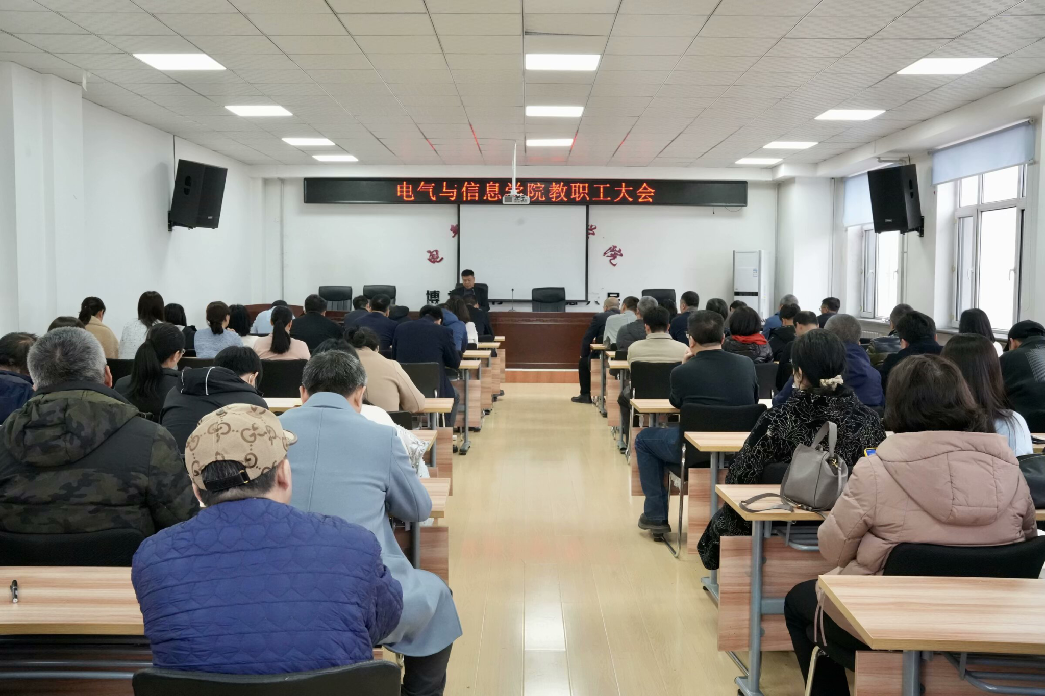 会议最后,学院党委书记万庆生作总结讲话,他指出教职工大会是“上传下达、民主参与、凝心聚力”的重要平台,既能推动学校学院各项事业发展,也能保障教职工权益,全院教师要把思想和行动统一到学院发展大局中,以龙江智慧大农业发展为己任,共同促进学院教育教学质量的提升和学生的全面发展,为科技强省贡献力量。
