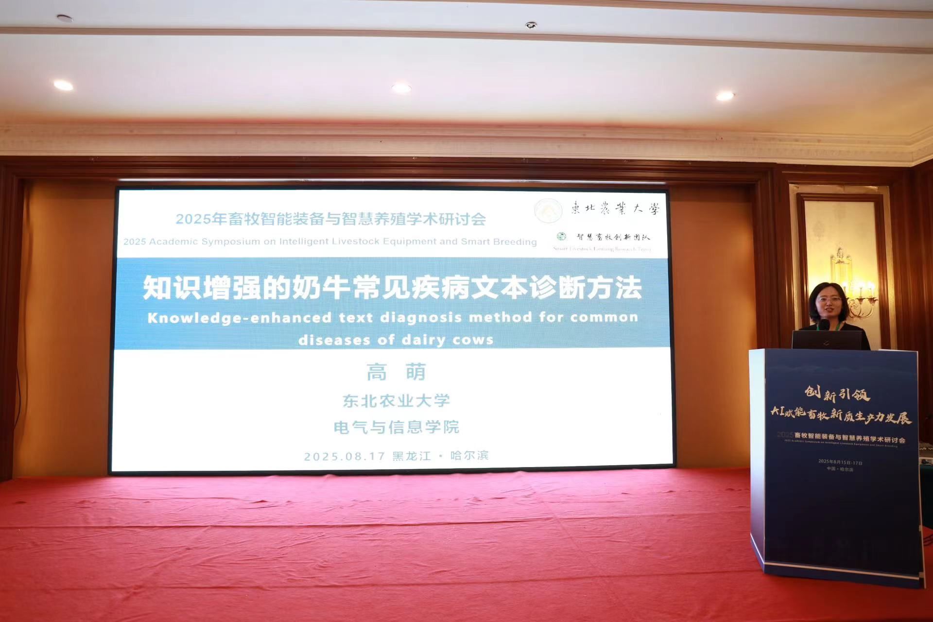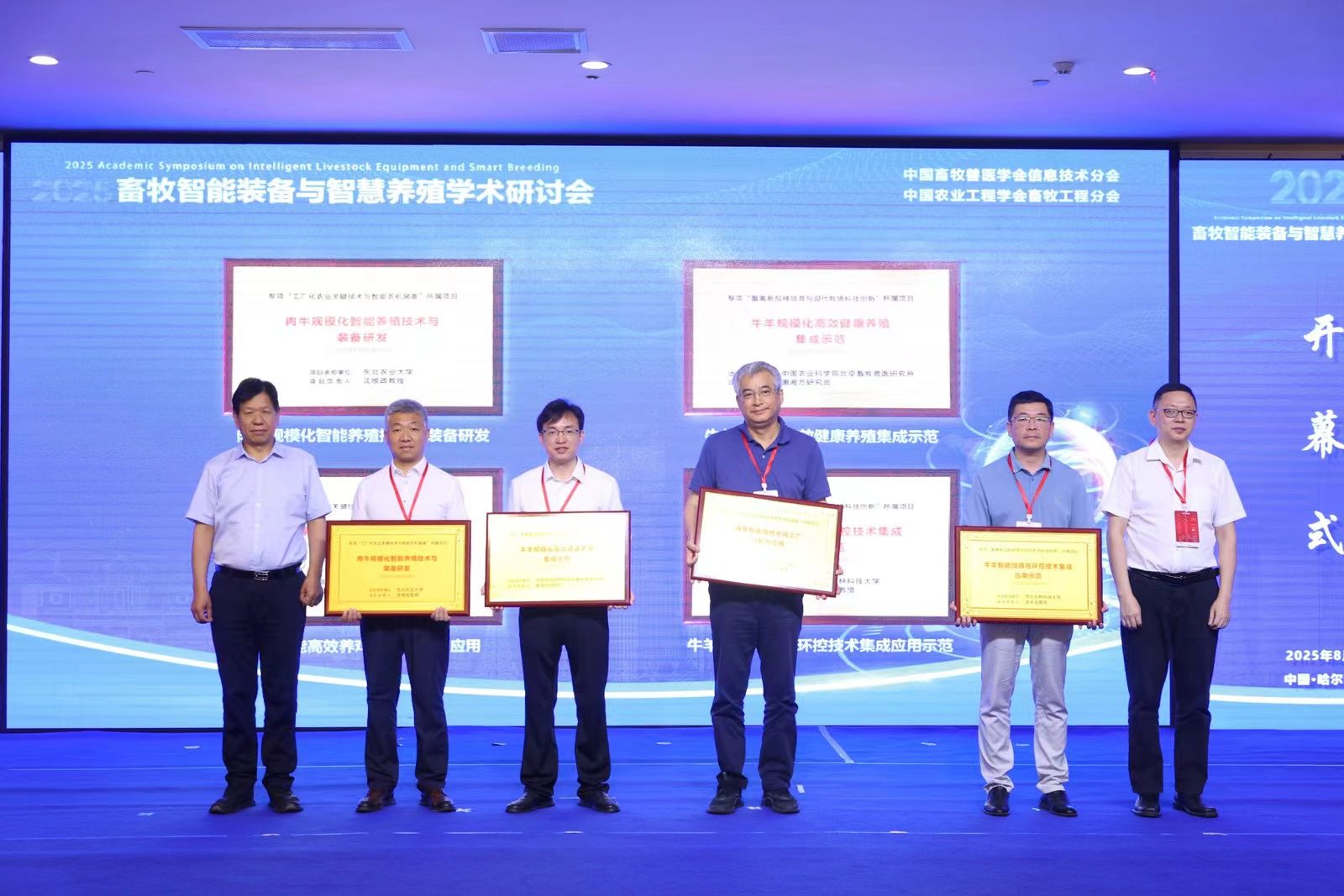 8月16-17日,2025年畜牧智能装备与智慧养殖学术研讨会在哈尔滨召开。本次会议由中国畜牧兽医学会信息技术分会和中国农业工程学会畜牧工程分会主办,我院作为主要单位,与中国农业科学院北京畜牧兽医研究所、中国农业大学和中国畜牧业协会联合支持举办。我校校长刘竹青,黑龙江省科学技术厅副厅长王晓浒,农业农村部原国家首席兽医师(官)李金祥,中国畜牧兽医学会副理事长秦玉昌,中国农业工程学会秘书长王应宽等出席会议并致辞。