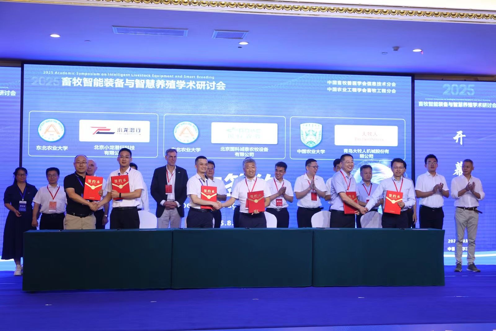会议发布了由我院沈维政、魏晓莉、高萌牵头制定的《寒区规模化奶牛舍环境参数自动监测技术规范》、《规模化牧场奶牛采食信息自动监测技术规范》、《奶牛生产性能(DHI)数据自动解读技术规程》3项黑龙江省地方标准,我院(沈维政教授)与中国农业科学院北京畜牧兽医研究所、中国农业大学和西北农林科技大学分别牵头的国家“十四五”重点研发项目负责人共同发表项目一体化推进宣言,并举行了与北京国科诚泰农牧设备有限公司、北京小龙潜行科技有限公司的校企合作签约仪式。