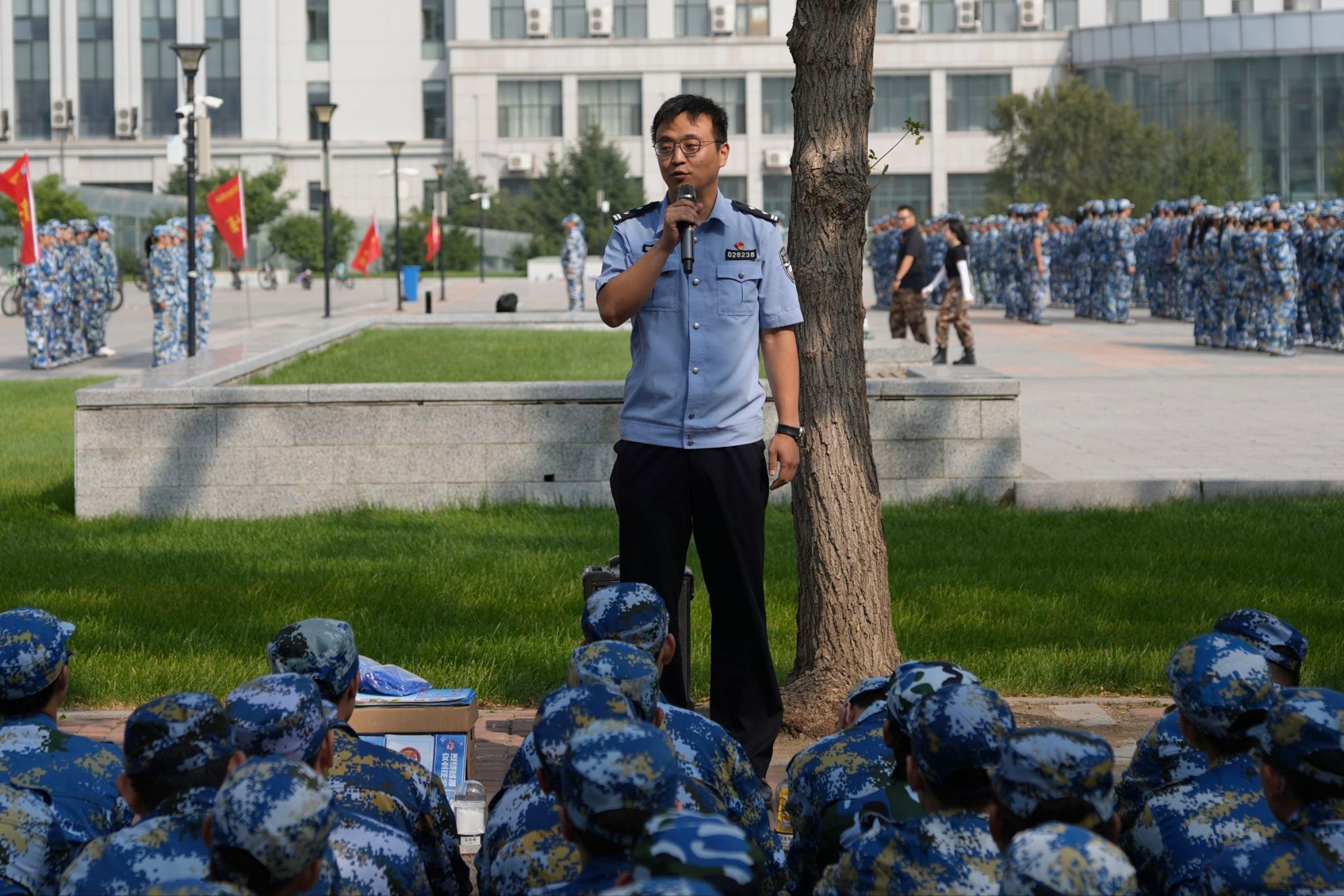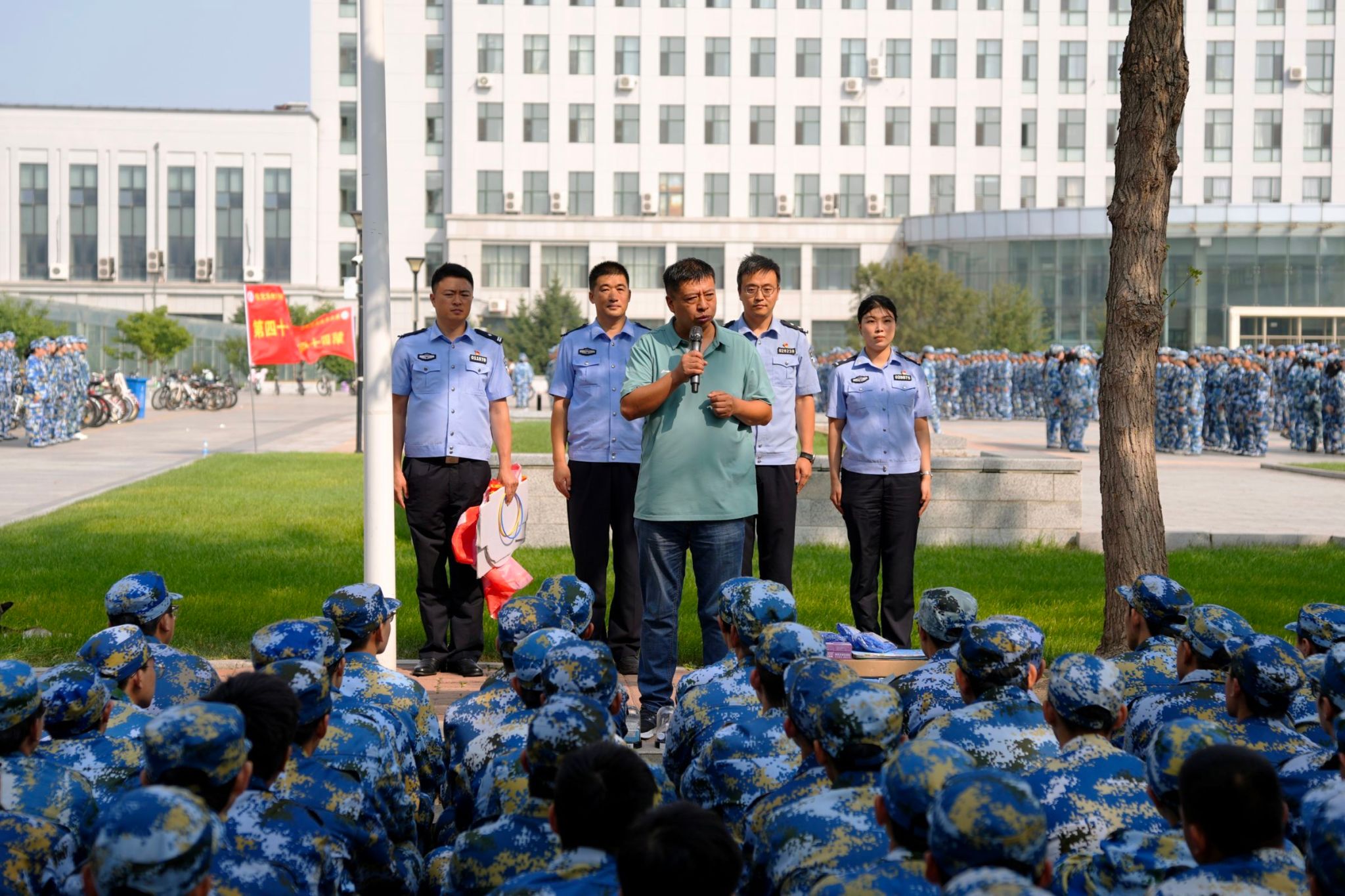 为深入贯彻落实校园安全工作要求,提升2025级新生的安全防范意识与自我保护能力,9月4日,bevictor伟德国际1946紧抓军训育人契机,在训练场地为全体大一新生举办了一场别开生面的“安全教育第一课”。本次活动由哈尔滨市公安局公交分局松江生态园站派出所教导员曹军带队,哈尔滨市公安局禁毒支队民警易天琦、哈尔滨市公安局公交分局民警康华担任主讲,学院党委副书记汪文斌及新生辅导员参加活动。