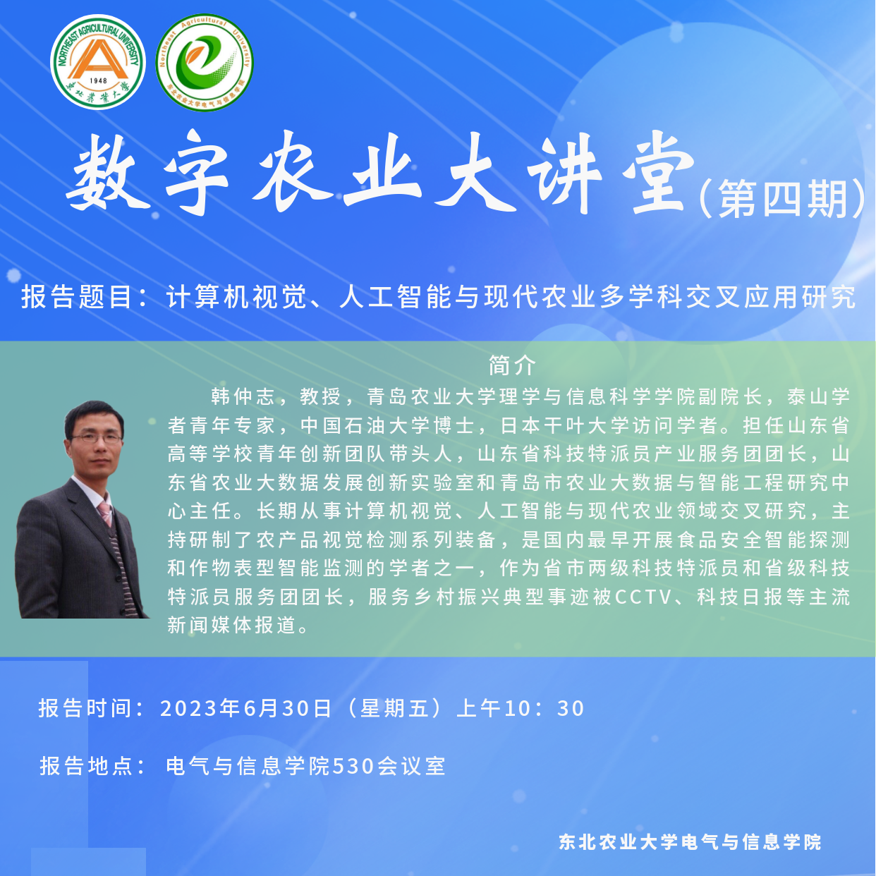 报告题目:计算机视觉、人工智能与现代农业多学科交叉应用研究