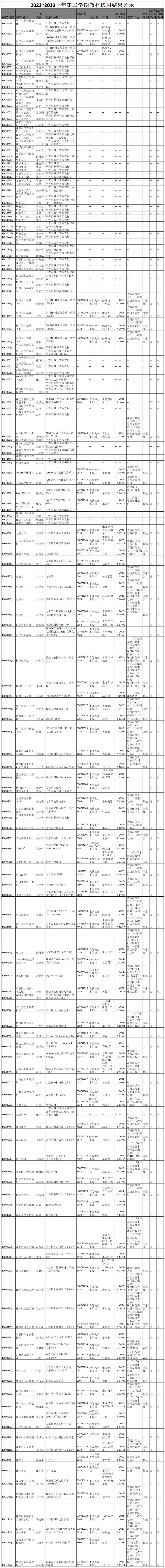 2022~2023学年第二学期教材选用结果公示