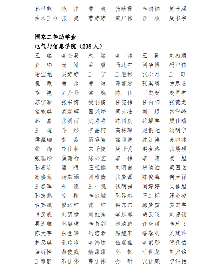 根据《黑龙江省财政厅黑龙江省教育厅黑龙江省人力资源和社会保障厅黑龙江省退役军人事务厅关于印发<黑龙江省学生资助资金管理办法>和<黑龙江省学生资助资金管理实施细则>的通知》(黑财规〔2023〕7号)文件精神以及《BETVLCTOR伟德本科生国家助学金评选及管理办法》的相关规定,根据学校、学院评选相关细则,经宣传动员、个人申报、班级评议、学院资格审查,现拟推荐593名同学参评2023-2024学年本科生国家助学金,现予公示。