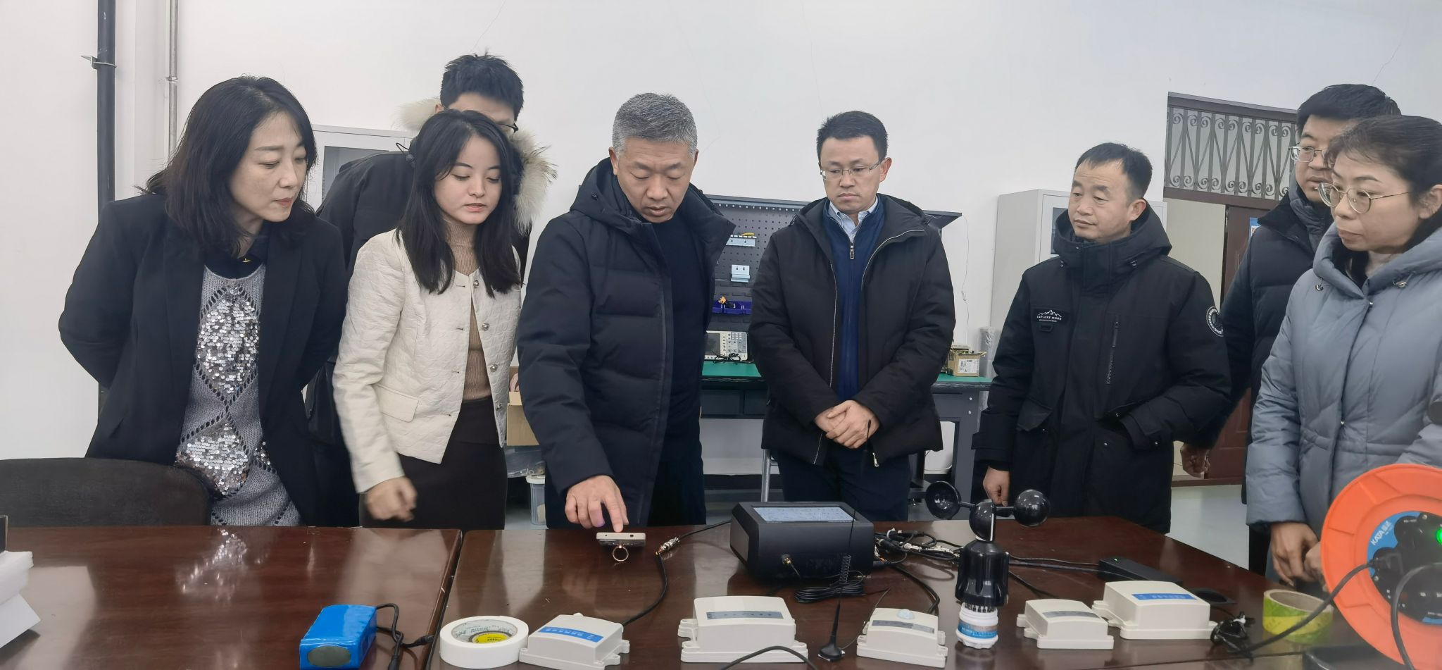 各位专家首先参观了智慧畜牧创新团队智能装备实验室。沈维政教授与各位专家就奶牛智慧及健康养殖过程中开发的新装备与科技服务管理平台进行了深入交流。其中,畜禽舍养殖环境智能监控系统是BETVLCTOR伟德智慧畜牧创新团队自主研发的一套多功能环境监控设备,该系统已在多家牛场(包括奶牛及肉牛场)、育肥猪场及湖羊场投入使用,既实现了养殖舍内关键环境参数的实时采集与大数据分析,也可针对动物的冷、热应激及舍内环境状况进行精准调控。