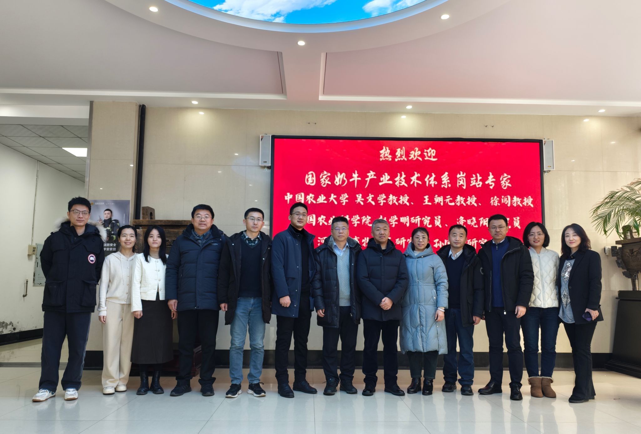 1月3日上午,应我院智慧畜牧创新团队邀请,国家奶牛产业技术体系奶牛场生物安全与综合防控岗位科学家吴文学教授、奶牛体系生产与环境控制岗位科学家王朝元教授、奶牛体系常见病岗位科学家徐闯教授、奶牛体系繁殖技术岗位科学家赵学明研究员、奶牛体系加工岗位科学家逄晓阳研究员、奶牛体系保定综合试验站站长孙凤莉研究员来我院交流。学院行政负责人戴百生、奶牛体系智能化养殖岗位科学家沈维政教授及智慧畜牧创新团队成员全程陪同。